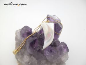 Colgante con cadena de bolitas y, un colmillo de Nácar. Piedra semipreciosa. Largo aprox, 42 cm.