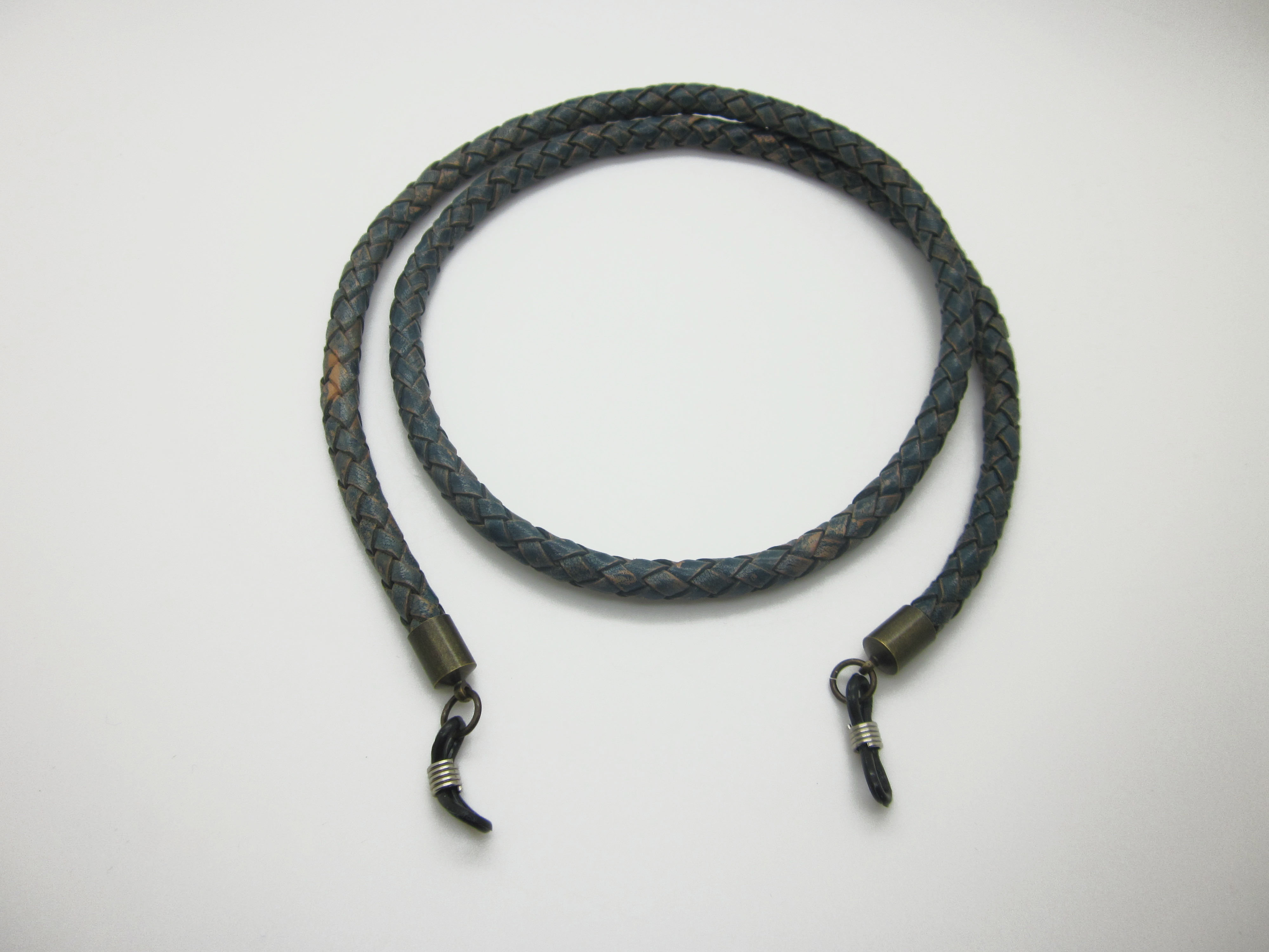 Cordón para las gafas, para caballero, de cuero trenzado azul oscuro degradado. Largo aprox, 63 cm.