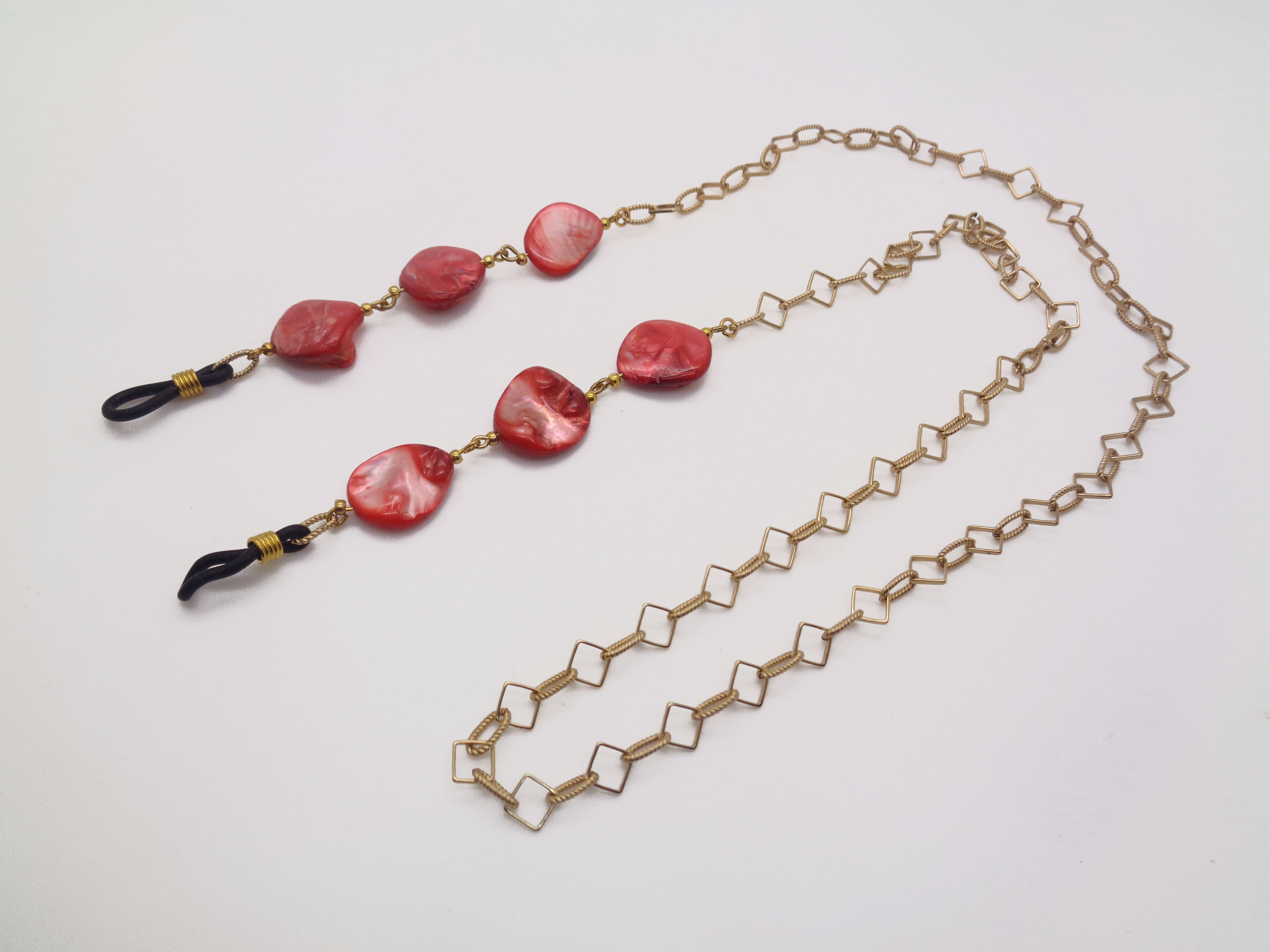 Cordón para sujetar las gafas, con piedras semipreciosas de Nácar. Largo aprox, 60 cm.
