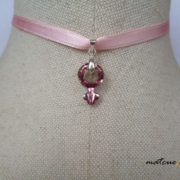 Gargantilla Solidaria , 19 de Octubre Día Internacional de lucha contra el Cáncer de Mama. está hecha a mano, con un Símbolo Femenino de Cristal Swarovski.