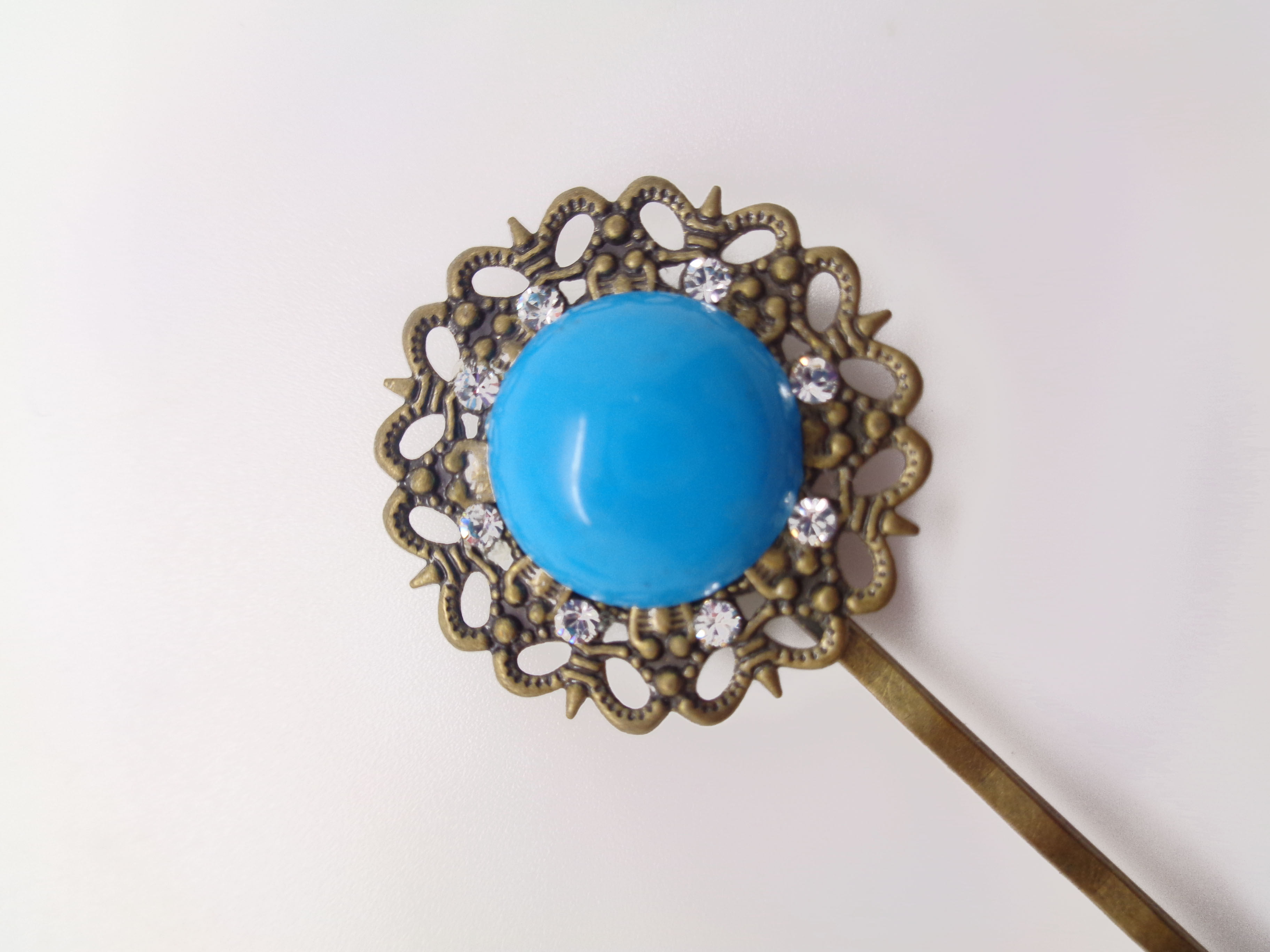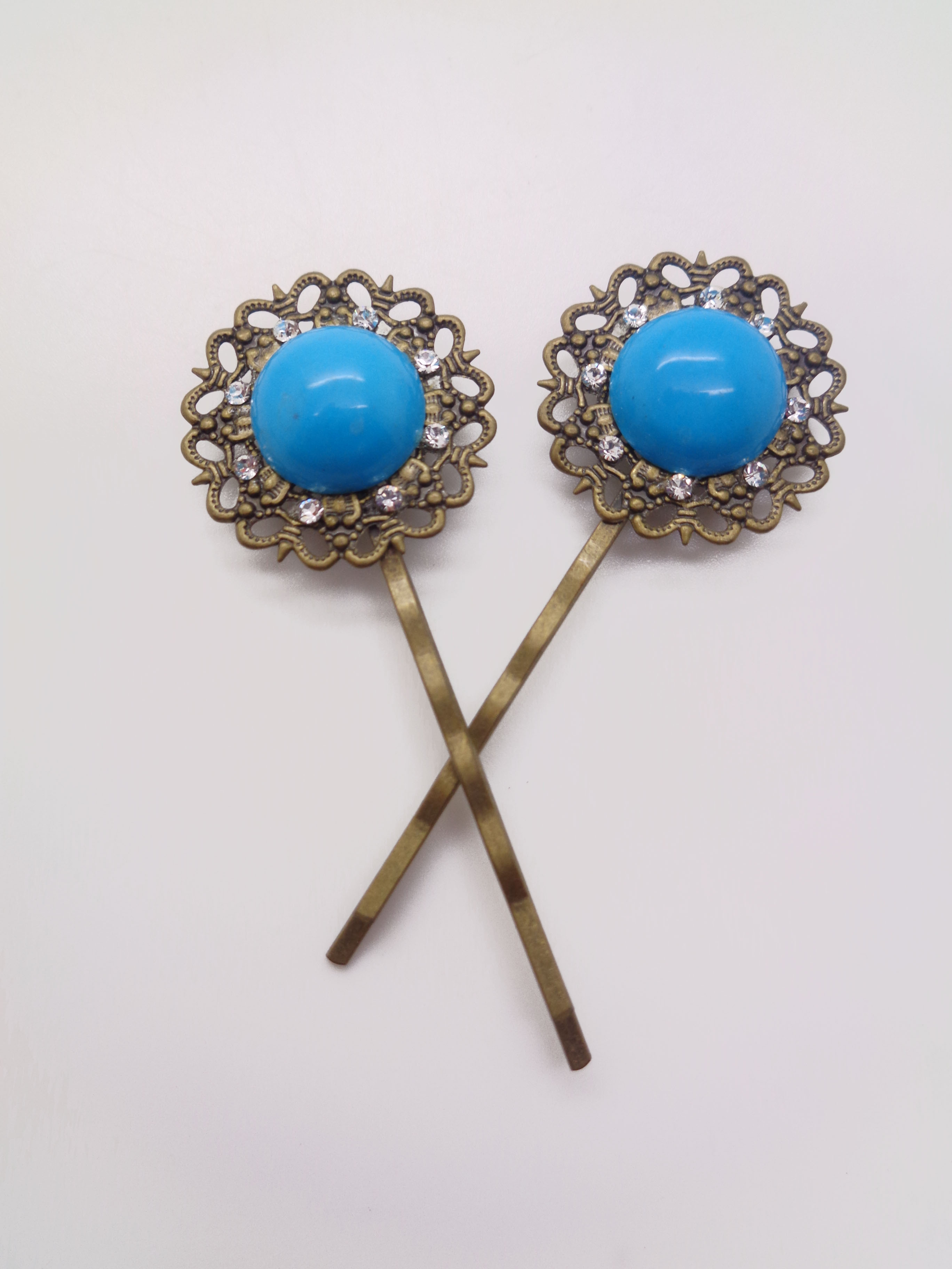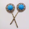 Horquillas para el cabello, de metal Zamak en Oro Viejo y, piedras semipreciosas de Howlita, con Cristales Strass.