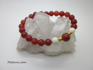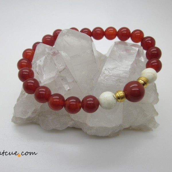 Pulsera elástica para hombre, con piedras semipreciosas. Cornalina y Turquesinas Blancas.