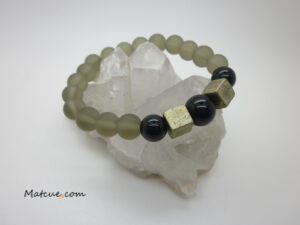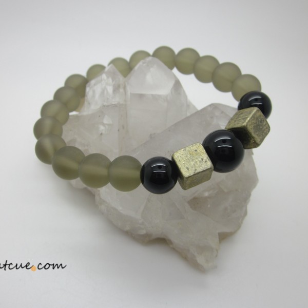 Pulsera elástica para hombre, con Cuarzo Glaseado y Ónix Negro, piedras semipreciosas.