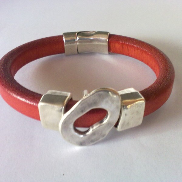 Pulsera para hombre de cuero regaliz, color granate, y, piezas de metal Zamak (no ennegrece), Cierre de imán. Medida aprox, 22 cm.